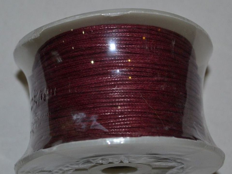 Шнур вощений - це міцний плетений бавовняний шнур, просочений воском для простоти нанизування, але це також робить шнур міцним. Універсальний засіб для складання авторських прикрас, бус, браслетів, брелків. Ціна за бабину-90 метрів. Колір-бордовий.
