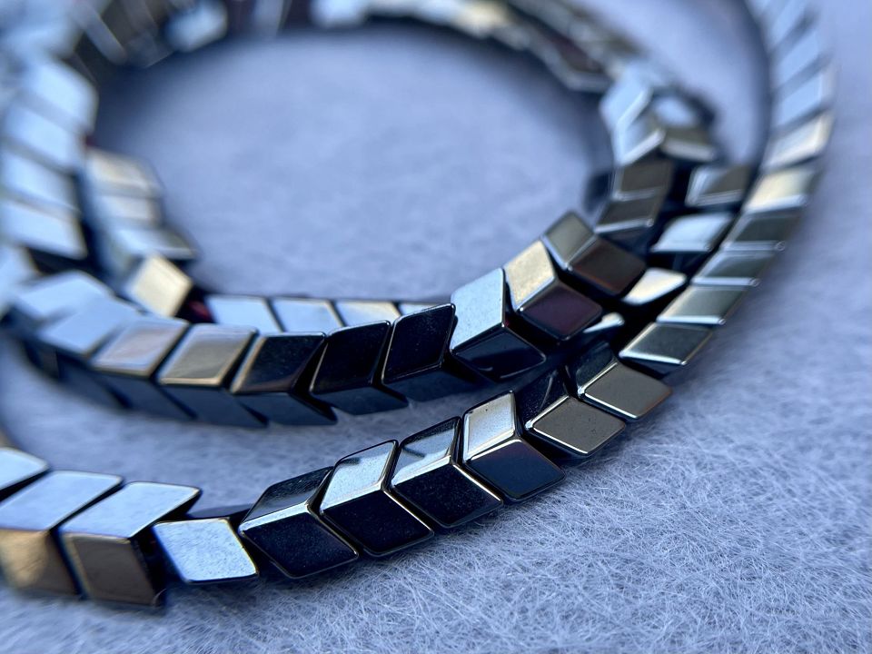 Гематит-натуральний, гладкий. Розмір намистини: 5*6мм, товщина: 3мм. Кількість намистин на нитці: 108 (+-2шт). Отвір: 1мм. Ціна за нитку (без замку). Довжина нитки: 40 см