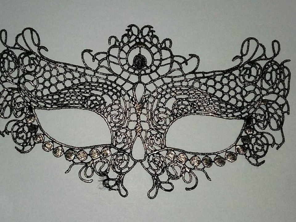 Маска ажурна з м'якого мережива. Колір-чорний з золотим напиленням. Ціна за 1 штуку