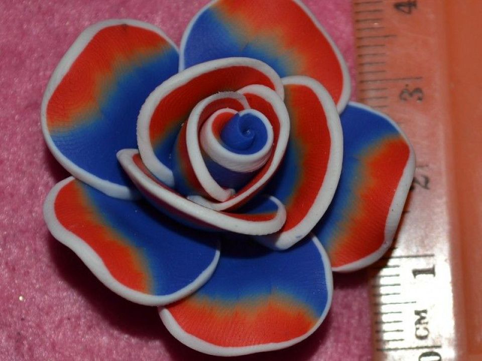 Намистини з полімерної глини. Форма: об'ємна троянда. Розмір намистини 4см, отвір: 1 * 1.5 мм. Ціна вказана за 1 шт Квітку можна нанизати на основу або приклеїти. Так як це намистини ручної роботи, то розмір може варіюватися: + -1 мм