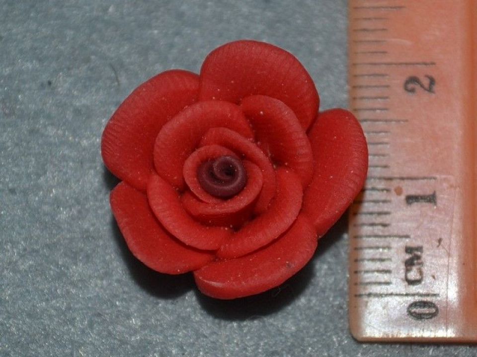 Намистини з полімерної глини. Форма: об'ємна троянда. Розмір намистини 2см, отвір: 1 * 1.5 мм. Ціна вказана за 1 упаковку-15шт. Квітку можна нанизати на основу для браслета або приклеїти на основу для кілець. Так як це намистини ручної роботи, то розмір може варіюватися: -1 мм