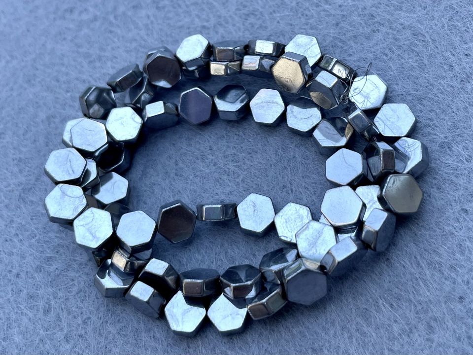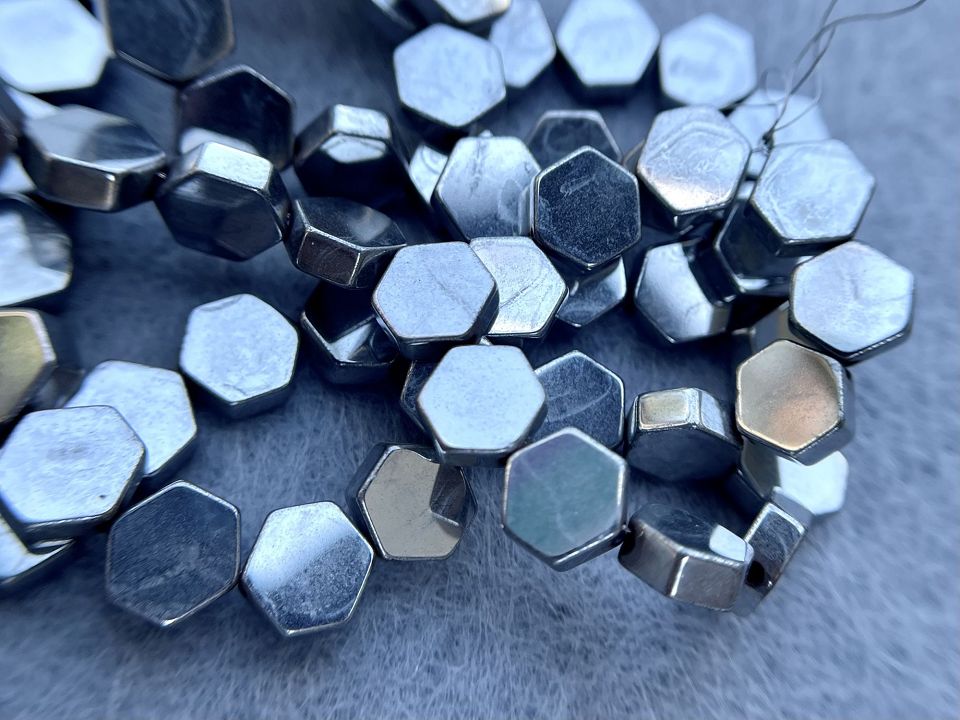 Гематит-натуральний, гладкий. Розмір намистини: 6*6мм, товщина: 2,5мм. Кількість намистин на нитці: 63 (+-2шт). Отвір: 1мм. Ціна за нитку (без замку). Довжина нитки: 39 см