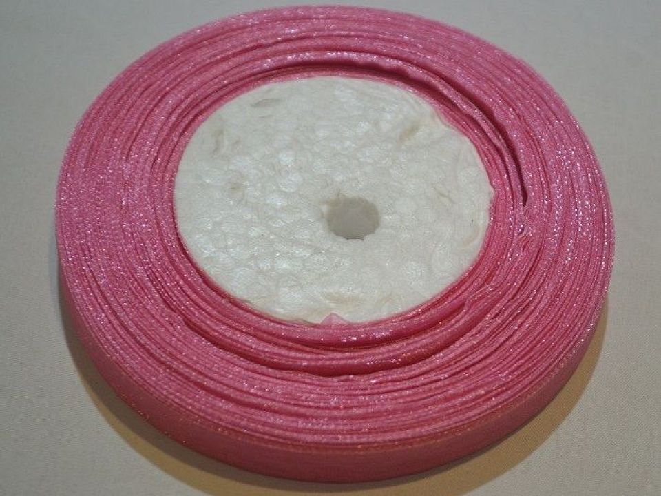 Стрічка з органзи, ширина-1.2см. В мотку-46 метрів. Використовуються при будь-яких видах декорування (при виготовленні сувенірів, ляльок, шпильок, гумок, обручів; при упаковці подарунків) .Ленти з органзи вдають із себе тонкі, трохи жорстким і напівпрозорі тканини смужки.