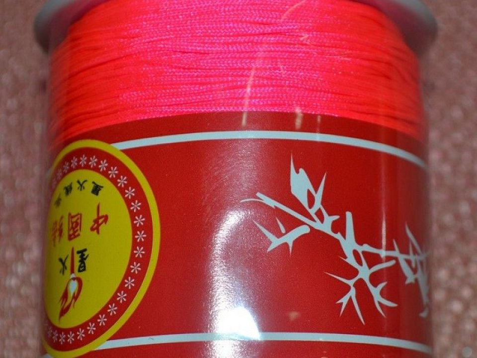 Шнур синтетичний (капронову ще називають нейлоновим), товщина -1мм. Має високу міцність і стійкість до тертя. Плавиться якщо його підпалити .Такий шнурок часто використовують для плетіння браслетів Шамбала, і інших прикрас в техніці макраме. Ціна за бабину (100ярдов) -92метра.