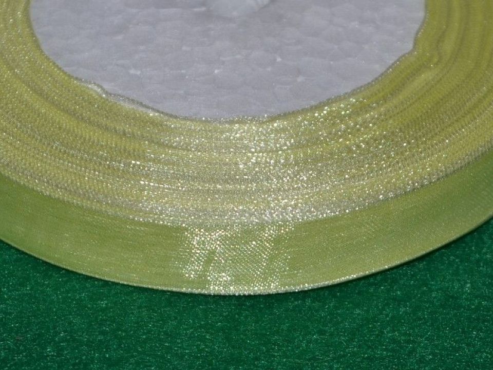 Стрічка з органзи, ширина-1.2см. В мотку-46 метрів. Використовуються при будь-яких видах декорування (при виготовленні сувенірів, ляльок, шпильок, гумок, обручів; при упаковці подарунків) .Ленти з органзи вдають із себе тонкі, трохи жорстким і напівпрозорі тканини смужки.