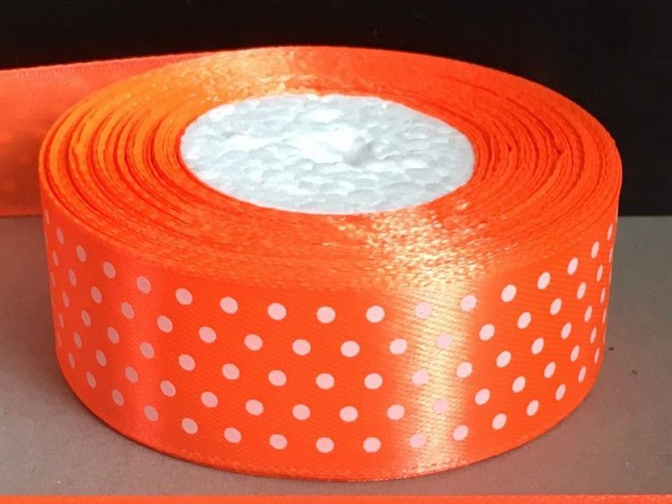 Стрічка атласна в горошок, ширина 2.5см. В мотку ~ 23 метра. Стрічка атласна - це стрічка, яка зроблена атласним переплетенням з віскозного шовку. Зазвичай її застосовують для прикраси, оздоблення одягу, вишивання стрічками, плетіння стрічками і т.д. Ціна вказана за 1 моток. Виробництво - Китай.