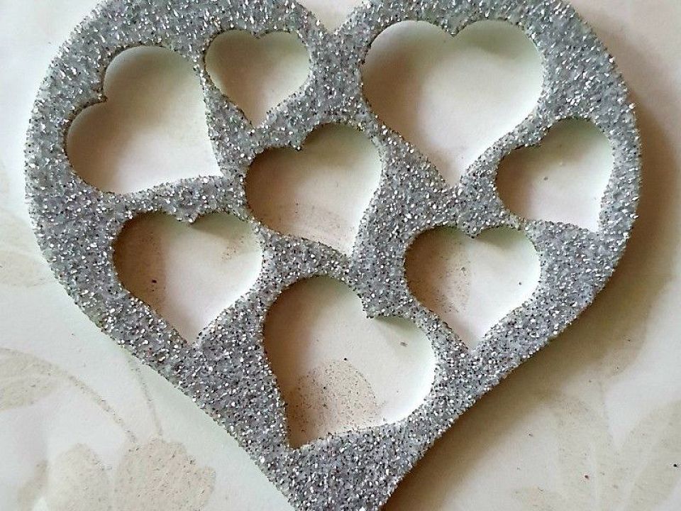 Вирубка з глітерного фоамірана для виготовлення шпильок, брошок, листівок. Розмір: 6,5 * 6,5 см Ціна за упаковку-20шт Колір-срібло