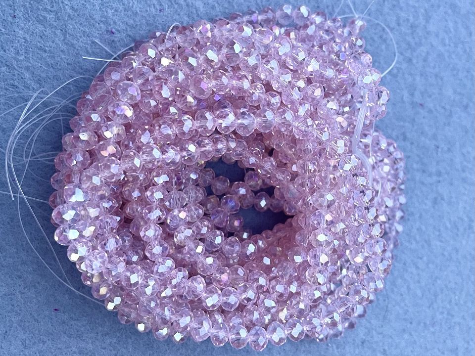 Кришталеві намистини, грановані. Розмір: 6*5мм, отвір: 1мм. Форма: рондель, сфера. У нитці: 90+-3шт. Ціна за 10 ниток.
