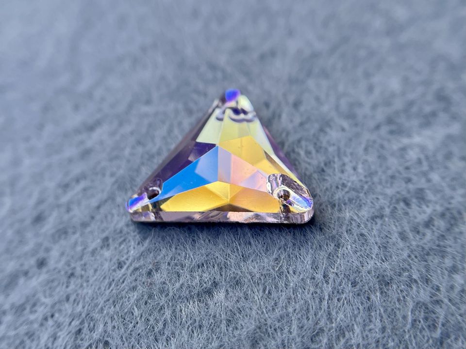 Пришивні скляні камінці. Виробництво: Чехія. Розмір: 18мм, форма-трикутник. Колір - Light Rose Shimmer. Ціна за планшетку – 30шт.
