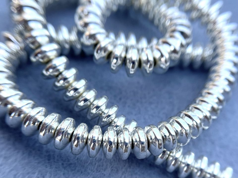 Гематит-натуральний, гладкий. Розмір намистини: 8мм, товщина: 3мм.