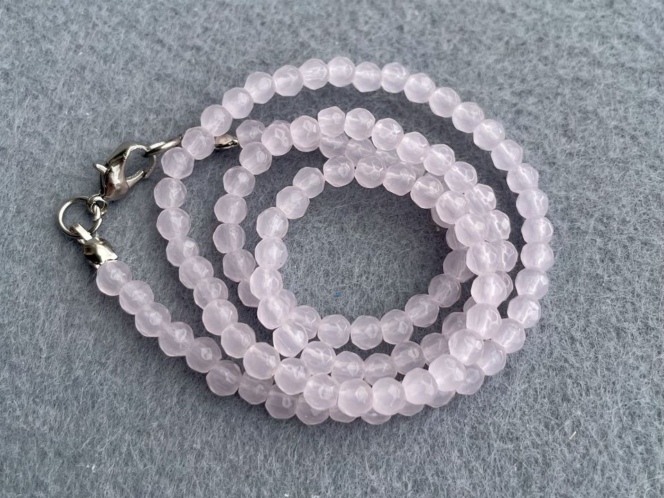 Рожевий кварц - пресований, гранований. Розмір намистини: 4мм.