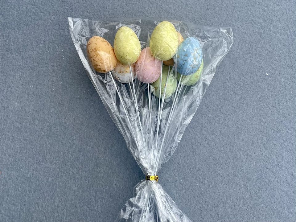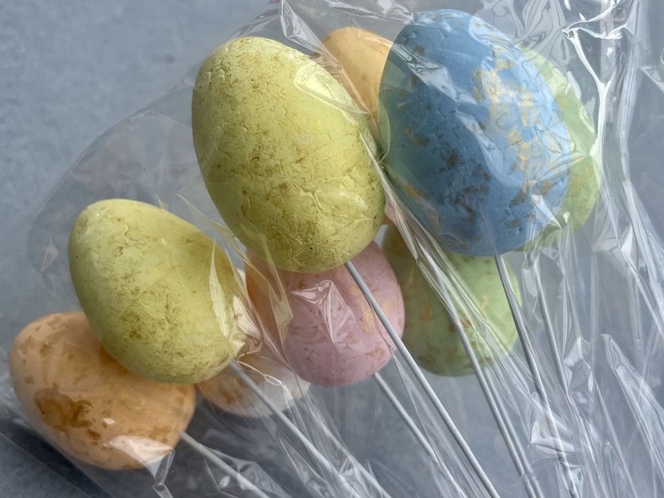 Пенопластовые яйца на палочке-декорированные. Размер: 4см. В упаковке-9шт. Пенопластовые фигурки применяют в рукоделии и творчестве, для декора и флористики. Цена за упаковку