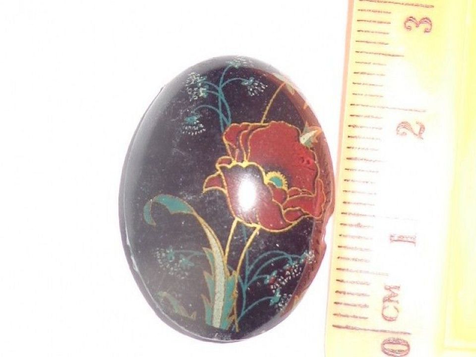 Кабошон фарфоровый с изображением цветов ~ 25*20мм. Форма овальная с плоским основанием. В Понятие "кабошон" входить любой декоративный элемент, что имеет плоскую "подошву" которой он приклеюеться или крепится к основанию. Это может быть декоративный элемент из стекла, пластика в форме круга или овала, цветы из смолы, акрила, полимерной глины. Широко використовуеться изготовлению кулонов, медальонов, брелков, колец, сережек, шпильок, так же подходит для украшения открыток.