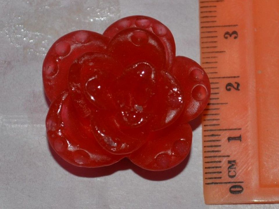 Пластиковый кабошон виде цветка, имеет плоское (ровное) основание. Размер розы 3см, основание 2.5см. Используется для украшений бантов, заколок и других различных поделок