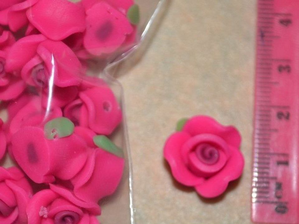 Бусины из полимерной глины. Форма:обьёмная роза. Размер бусины:15мм,отверстие:1*1.5мм. Цена указана за упаковку:20шт. Цветок можно нанизать на основу для браслета или приклеить на основу для колец. Так как это бусины ручной работы, то размер может варьироваться +-1 мм