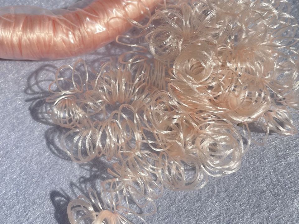 Синтетические волосы для кукол в жгуте, в полиэтиленовой упаковке.