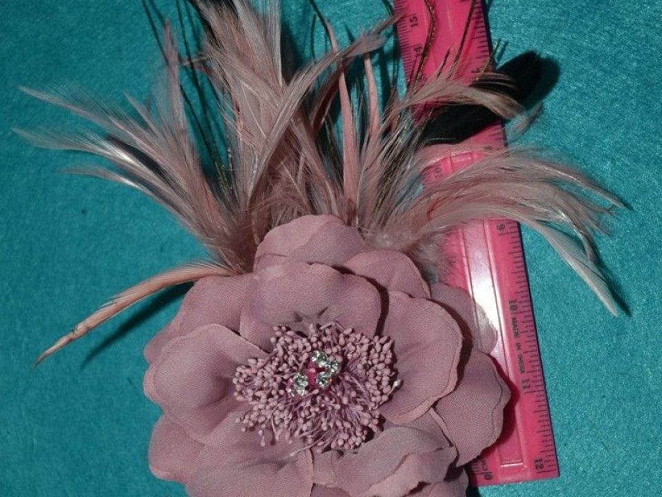 Цветок декоративный 12-14см, с основанием 2 в 1-используется как брошка и заколка. Украшенная тычинками со стразами и перьями. Цена за 1 шт