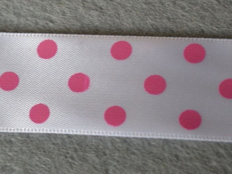 Лента атласная в крупный горошек, ширина 2.5 см.Цена указана за 10 метров.