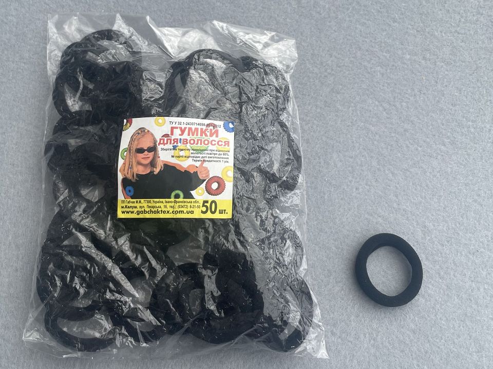 Набор резинок для волос.Черные. Диаметр-3,5 см. Цена за упаковку-50шт.