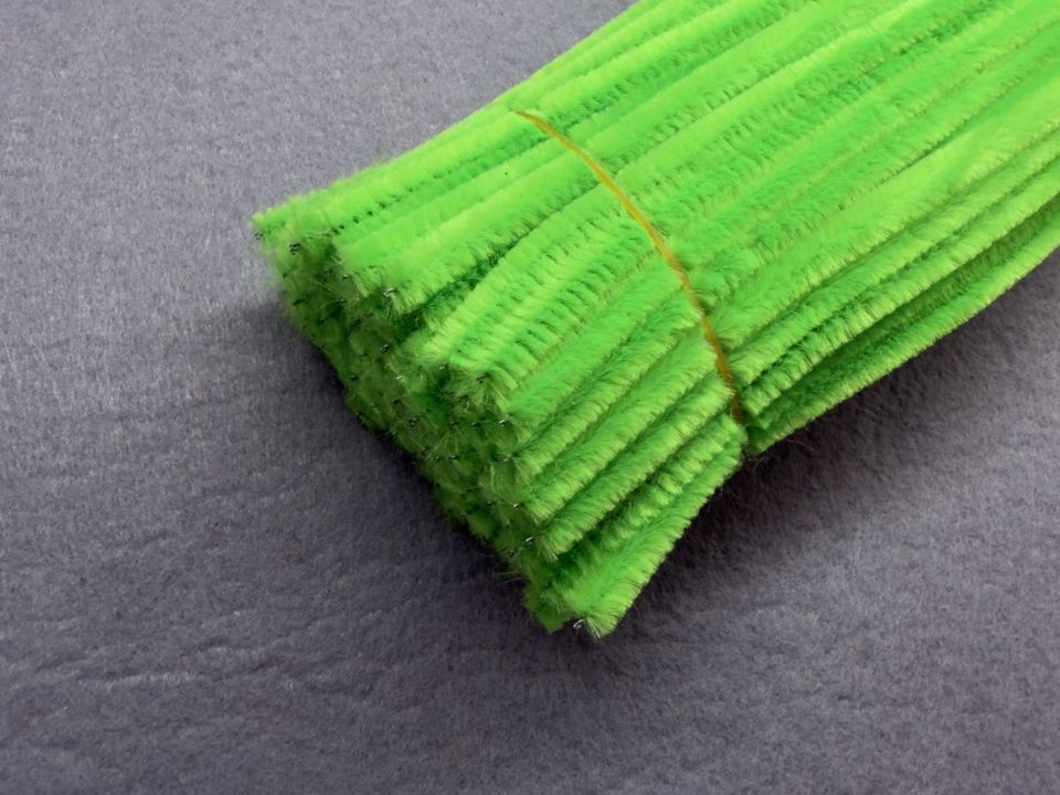 Синельная проволока - это тоненький металлический стержень, покрытый ворсистым материалом. Легко сгибается и принимает нужную форму. Используется для формирования каркасов игрушек, для декорирования и изготовлению различных поделок и фигурок. Цвет-салатовый.
