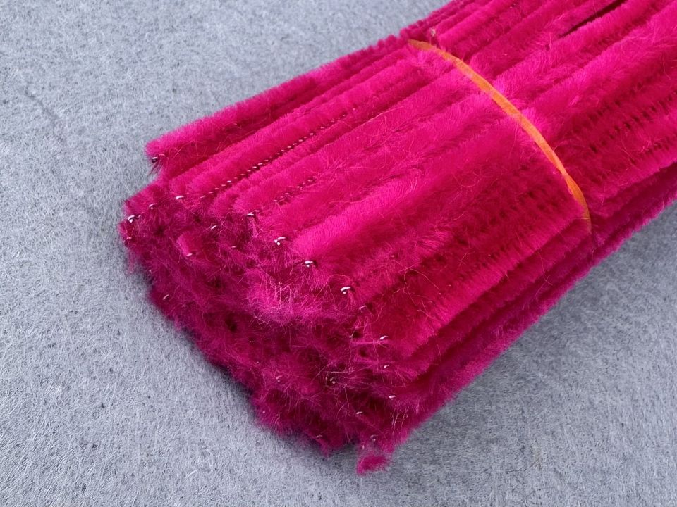 Синельная проволока - это тоненький металлический стержень, покрытый ворсистым материалом. Легко сгибается и принимает нужную форму. Используется для формирования каркасов игрушек, для декорирования и изготовлению различных поделок и фигурок. Цвет-малиновый