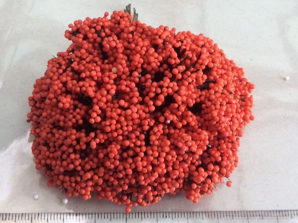 Тычинка-травка представляет собой множество маленьких окрашенных шариков из пенопласта на ниточках или проволоке .Цена за упаковку -12 букетов