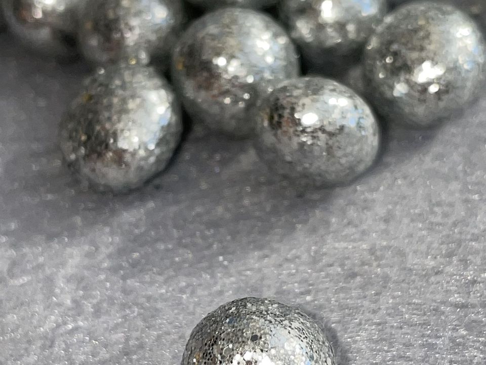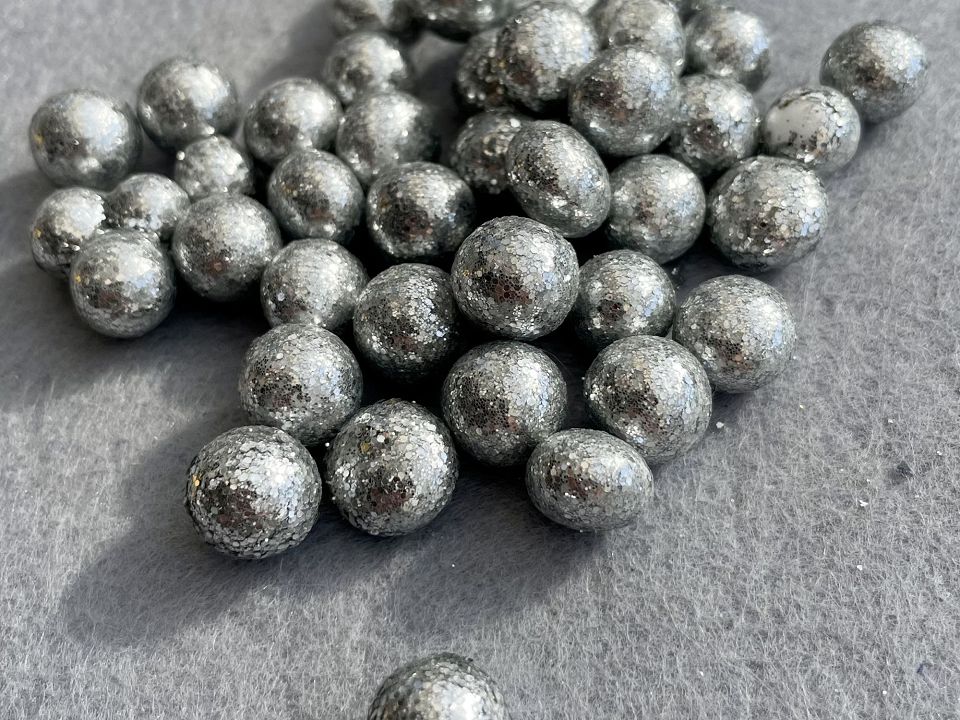 Шарики пенопластовые с глиттером серебро. Упаковка-230 шт+-10 шт. Размер от 8-12мм.