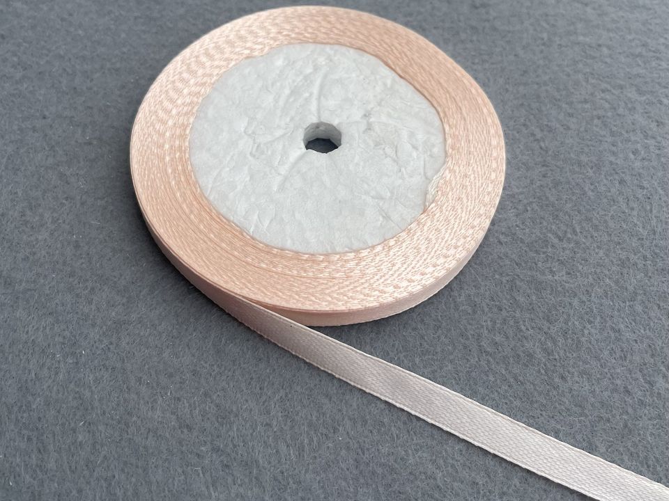 Лента атласная- ширина 6мм. В мотке ~23 метра. Цвет-светло персиковый. Применяют для украшения, отделки одежды, вышивания лентами, плетения лентами и т.д. Цена указана за 1 моток. Производство - Китай.