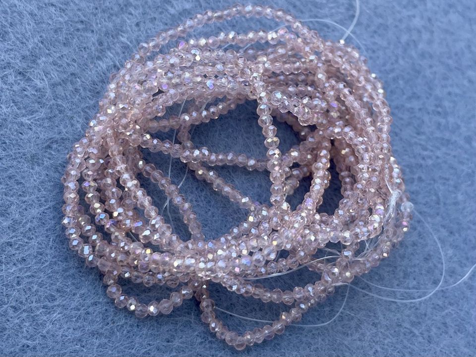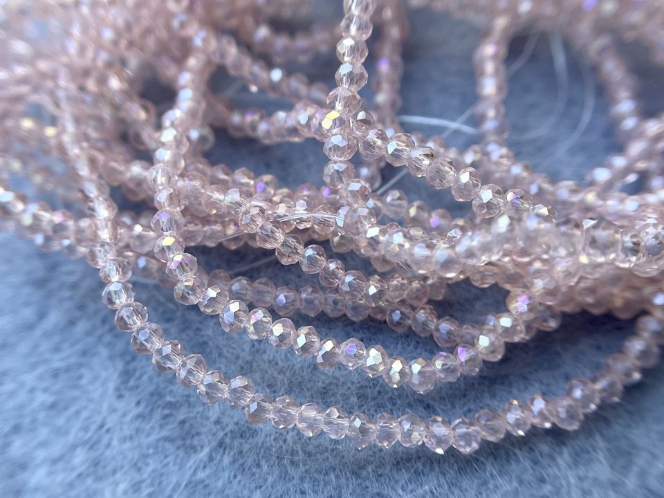 Хрустальные бусины, гранёные. Размер :1*2мм, отверстие : 0,7 мм. Форма: рондель,сфера . В нитке: 195+-3шт. Цена за 1 нитку.