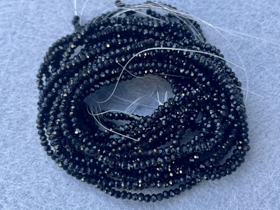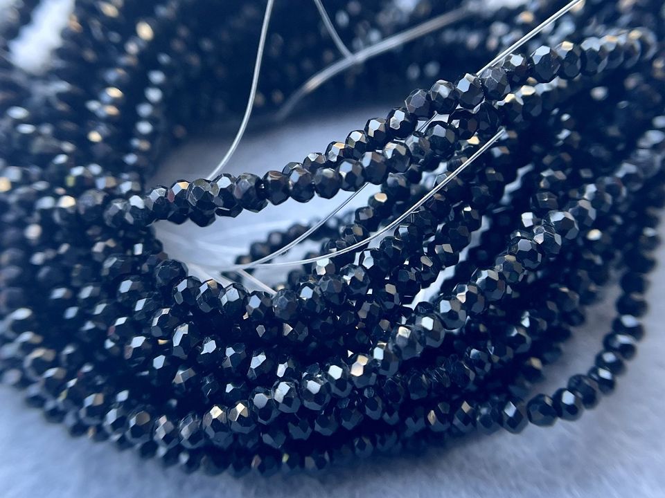 Хрустальные бусины, гранёные. Размер :1*2мм, отверстие : 0,7 мм. Форма: рондель,сфера . В нитке: 195+-3шт. Цена за 1 нитку.
