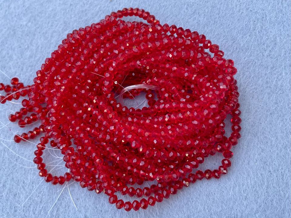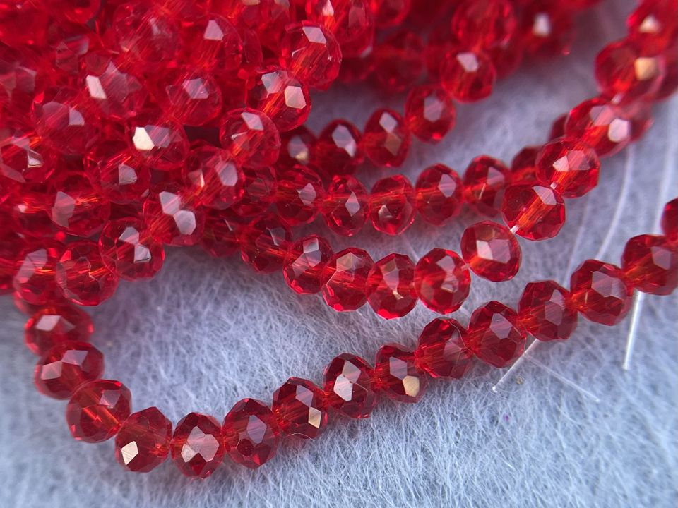 Хрустальные бусины, гранёные. Размер :4*4,5мм, отверстие : 1мм. Форма: рондель,сфера . В нитке: 143+-5шт. Цена за 1 нитку. Цвет- красный алый