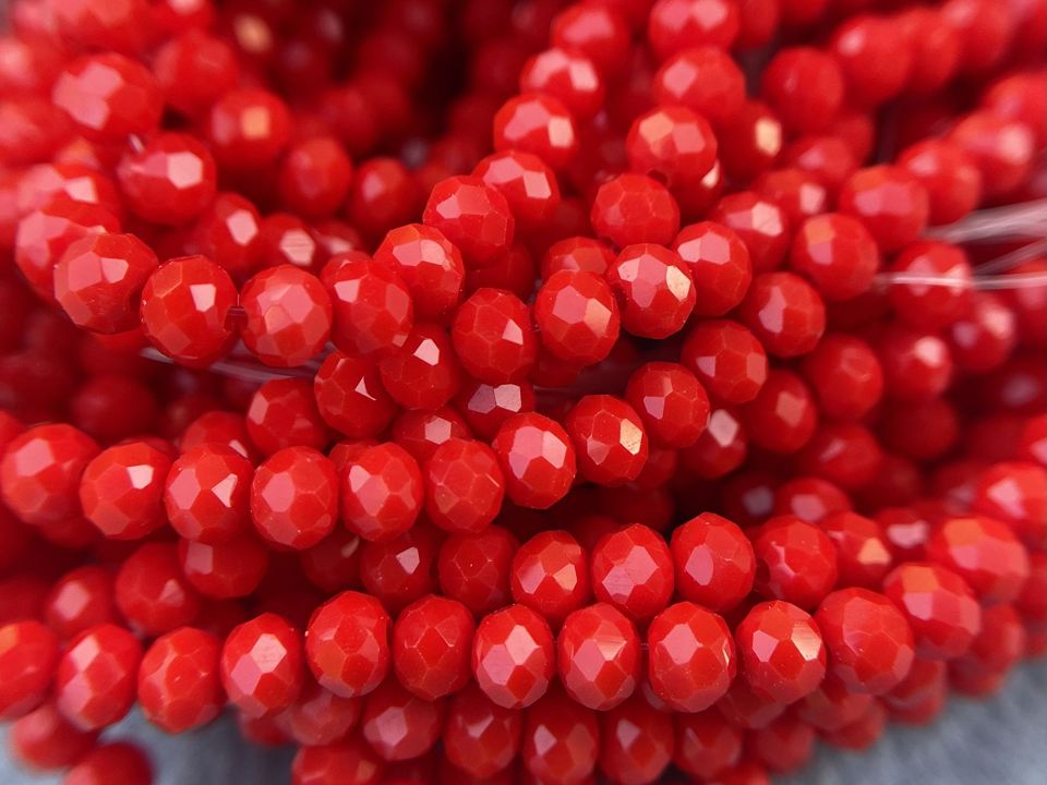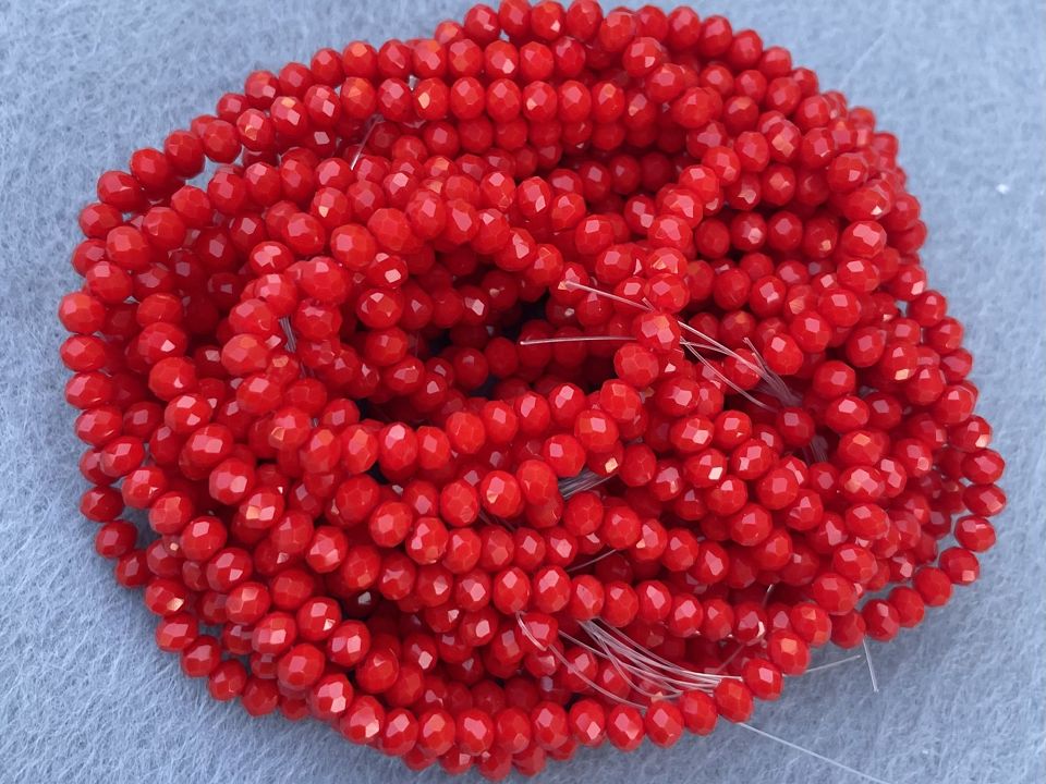 Хрустальные бусины, гранёные. Размер :4*4,5мм, отверстие : 1мм. Форма: рондель,сфера . В нитке: 143+-5шт. Цена за 1 нитку. Цвет- алый .