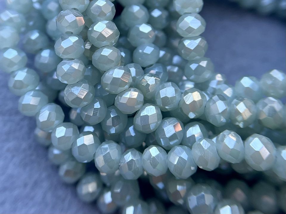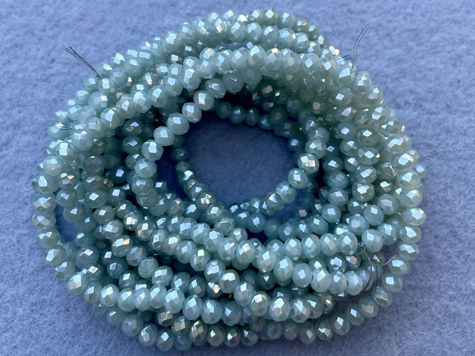 Хрустальные бусины, гранёные. Размер :4*4,5мм, отверстие : 1мм. Форма: рондель,сфера . В нитке: 143+-5шт. Цена за 1 нитку. Цвет- мятный .