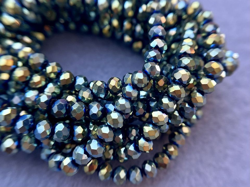 Хрустальные бусины, гранёные. Размер :4*4,5мм, отверстие : 1мм. Форма: рондель,сфера . В нитке: 143+-5шт. Цена за 1 нитку. Цвет- зеленого-голубой.