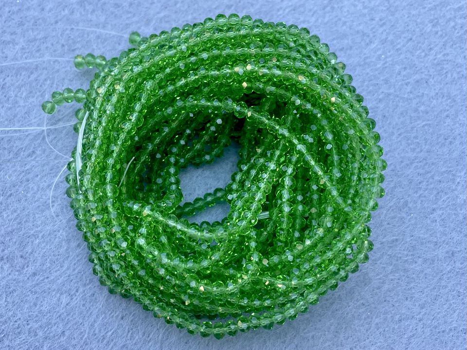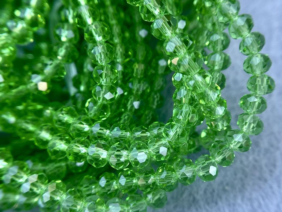 Хрустальные бусины, гранёные. Размер :4*4,5мм, отверстие : 1мм. Форма: рондель,сфера . В нитке: 143+-5шт. Цена за 1 нитку. Цвет- светло зеленый.
