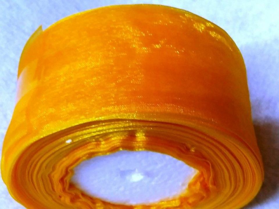 Лента из органзы ,ширина-5см. В мотке-46 метров. Используются при любых видах декорирования (при изготовлении сувениров, кукол, заколок, резинок, обручей; при упаковке подарков).Ленты из органзы представляют из себя тонкие, немного жестковатые и полупрозрачные тканевые полоски.