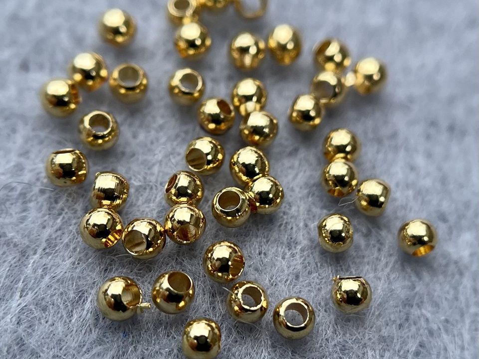 Бусины для бижутерии,покрытие родий. Цвет- золото. Диаметр: 2мм. Отверстие - 1мм. Цена за 50 шт