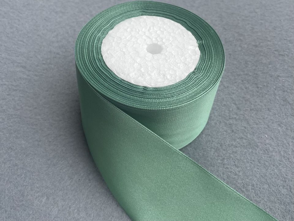 Лента атласная- ширина 5 см. В мотке ~23 метра. Цвет- нефритовый . Применяют для украшения, отделки одежды, вышивания лентами, плетения лентами и т.д. Цена указана за 1 моток. Производство - Китай.