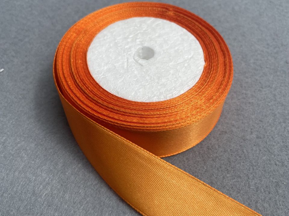 Лента атласная- ширина 2.5 см. В мотке ~23 метра. Цвет- оранжевый . Применяют для украшения, отделки одежды, вышивания лентами, плетения лентами и т.д. Цена указана за 1 моток. Производство - Китай.