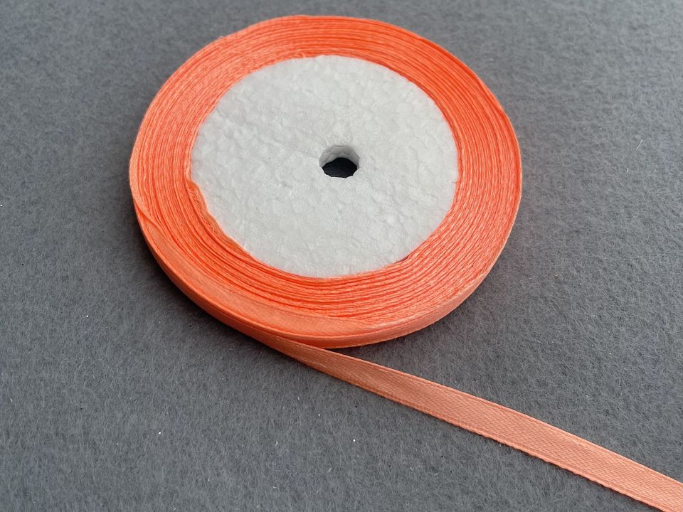 Лента атласная- ширина 6мм. В мотке ~23 метра. Цвет-абрикосовый. Применяют для украшения, отделки одежды, вышивания лентами, плетения лентами и т.д. Цена указана за 1 моток. Производство - Китай.