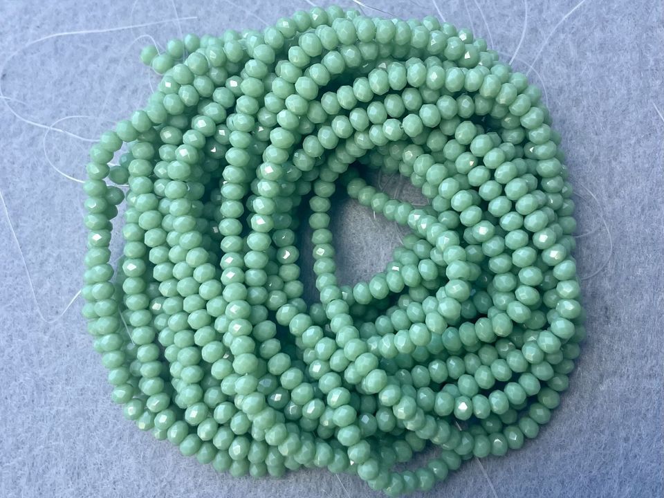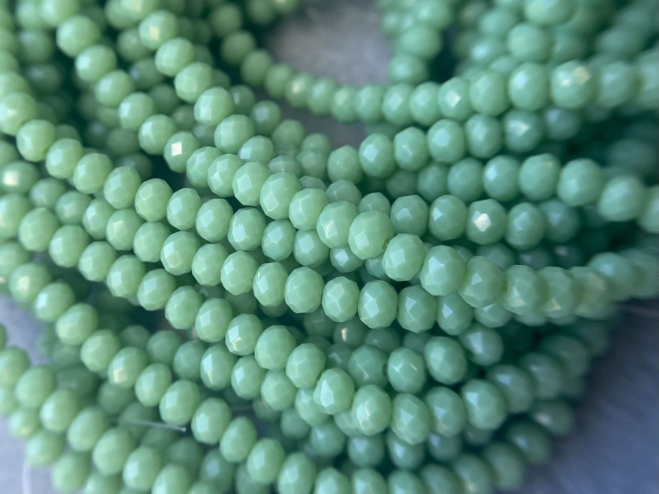 Хрустальные бусины, гранёные. Размер :3*3,5мм, отверстие : 1 мм. Форма: рондель,сфера . В нитке: 145+-5шт. Цена за 1 нитку. Цвет- светло зеленый .