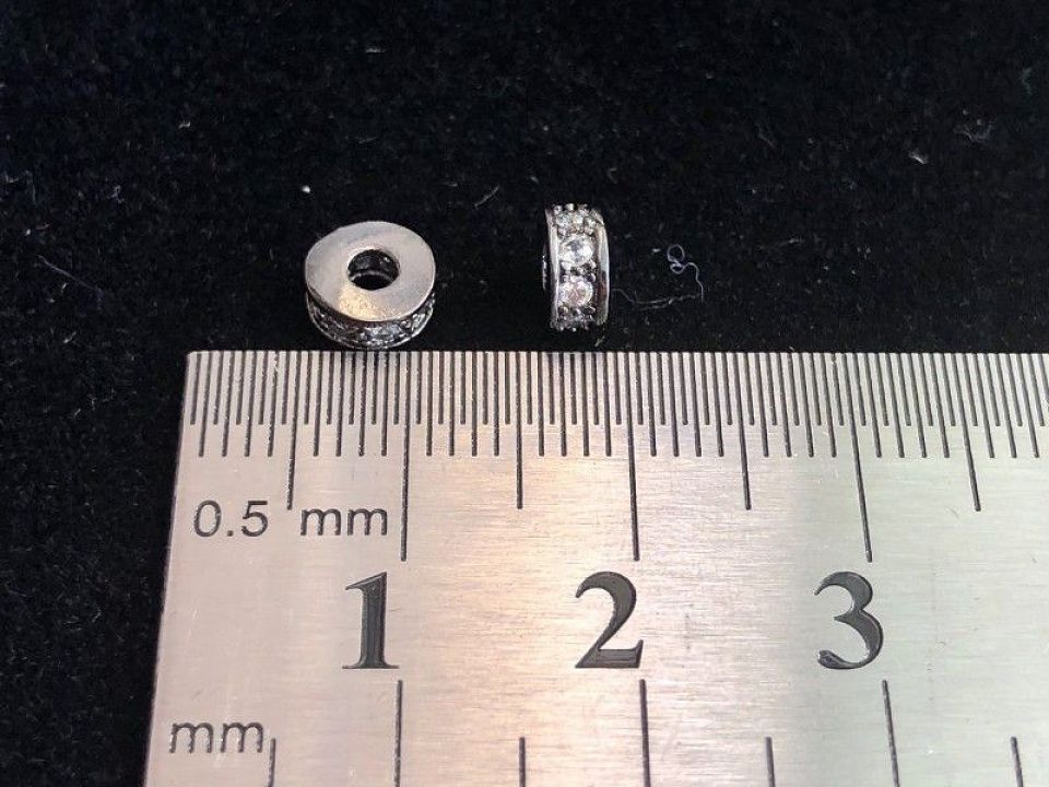 Бусины-рондэли инкрустированы Кубическим цирконием (также называются бусинами с фианитами)
