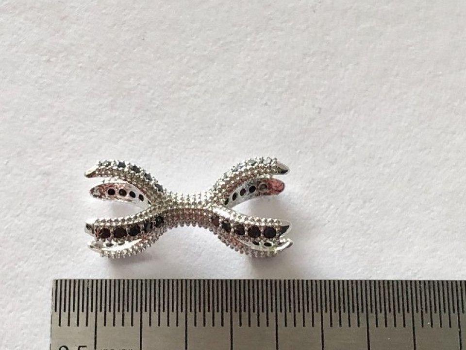 Бусина с шапочками по бокам.Инкрустированы Кубическим цирконием черного цвета (также называются бусинами с фианитами)