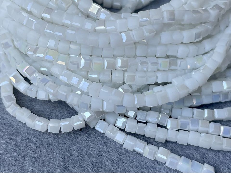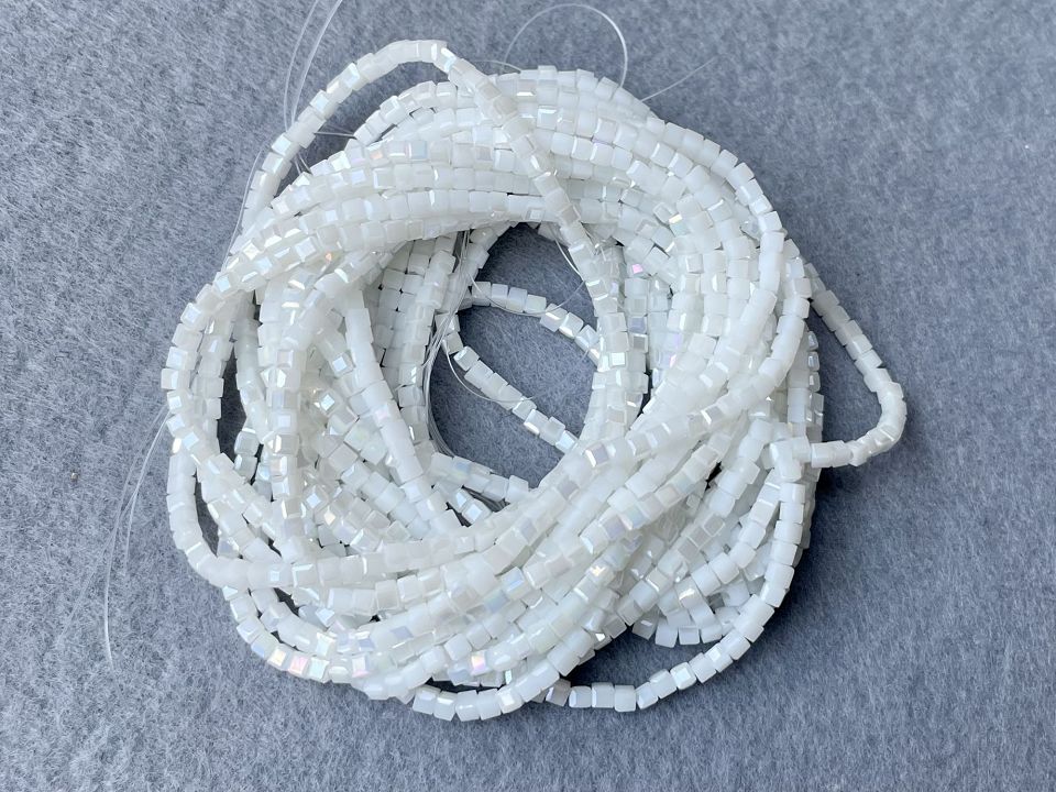 Хрустальные бусины, гранёные. Размер : 2мм, отверстие : 0,8мм. Форма: кубик. В нитке: 185+-5шт. Цена за 1 нитку.