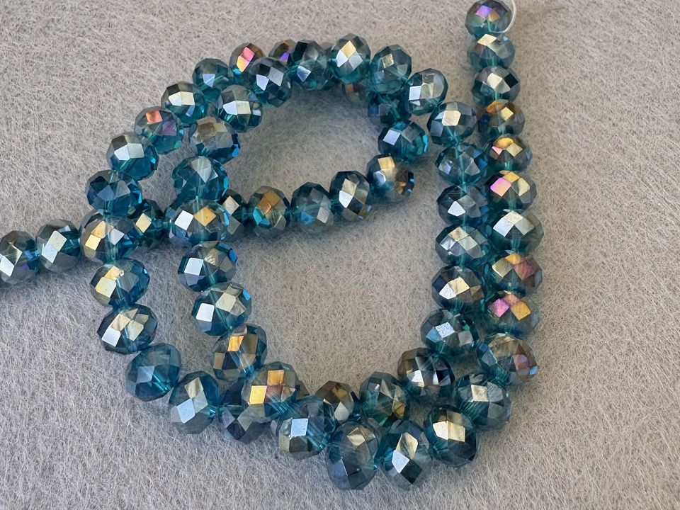 Хрустальные бусины, гранёные. Размер : 10*8 мм, отверстие : 1,5мм. Форма: рондель,сфера (эллипсоид). В нитке: 70+-2шт. Цена за 1 нитку.