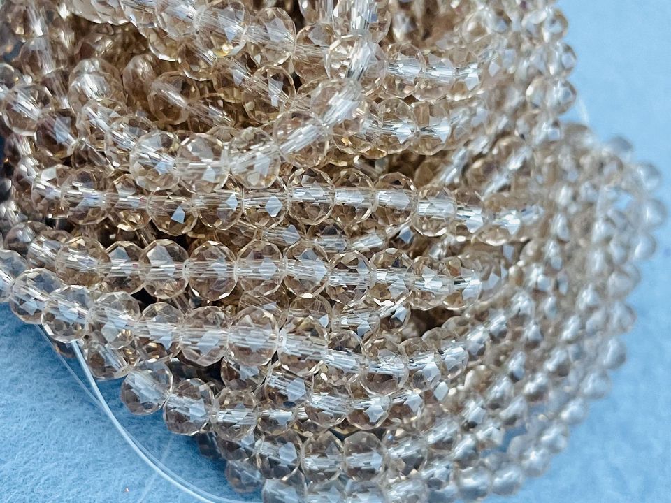 Хрустальные бусины, гранёные. Размер :6*5мм, отверстие : 1мм. Форма: рондель,сфера . В нитке: 90 +-3шт. Цена за 1 нитку.