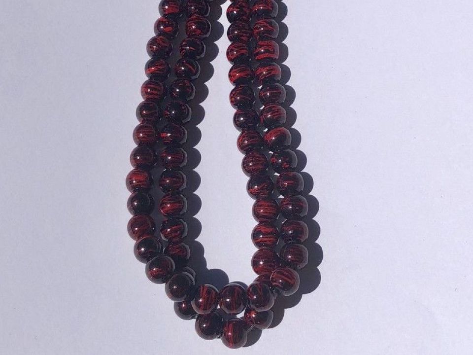 Жемчуг керамический,диаметр- 8мм.Глянцевый,цвет:черно-красный.Цена за нитку,в нитке примерно 100 бусин.