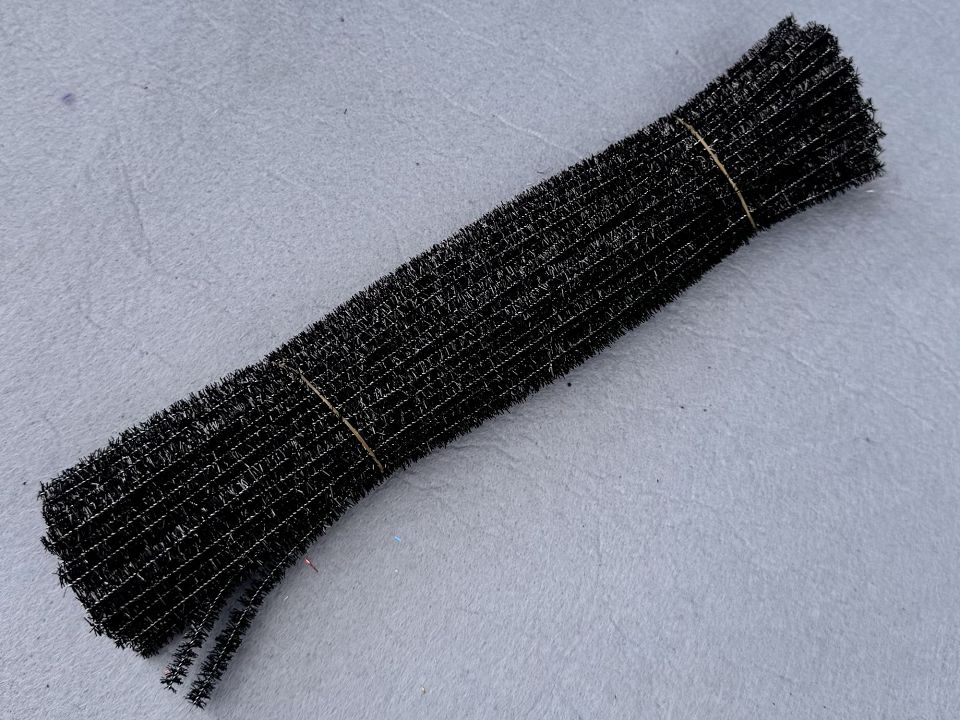 Синельная проволока - это тоненький металлический стержень, покрытый ворсистым материалом. Легко сгибается и принимает нужную форму. Используется для формирования каркасов игрушек, для декорирования и изготовлению различных поделок и фигурок. Цвет-черный