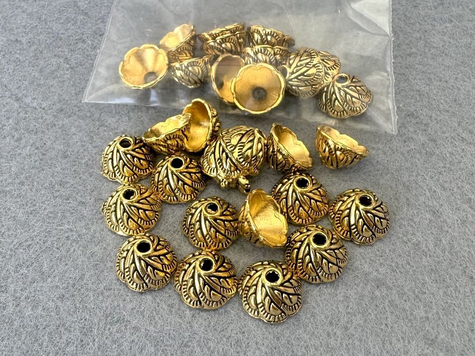 Шапочка металическая , литая для бусин. Цвет: античное золото Диаметр : 10мм , высота шапочки : 5мм Цена за упаковку : 20 грамм