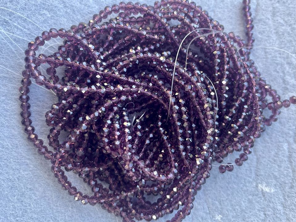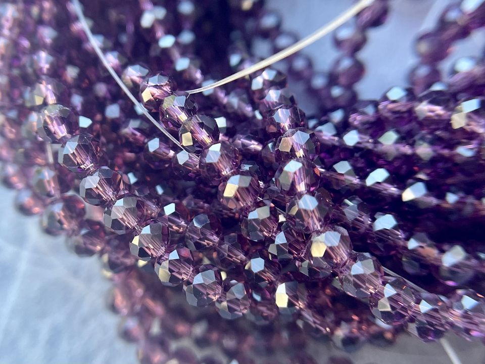 Хрустальные бусины, гранёные. Размер :3*3,5мм, отверстие : 1 мм. Форма: рондель,сфера . В нитке: 145+-5шт. Цена за 1 нитку. Цвет- тёмно фрезовый.